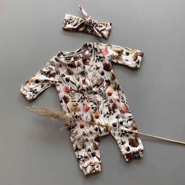 Vrolijk, warm en helemaal in stijl – het Wild Flowers boxpakje is een echte eyecatcher! Dit boxpakje heeft een drukke bloemenprint met prachtige herfsttinten, perfect voor het najaar. De rijke kleuren en speelse print geven het pakje een unieke, warme uitstraling. Gemaakt van een dunne jersey stof die zacht aanvoelt en meebeweegt met je baby voor maximaal comfort. Dankzij de drukknopen aan de voorkant is aankleden en verschonen eenvoudig – ideaal voor elke dag.